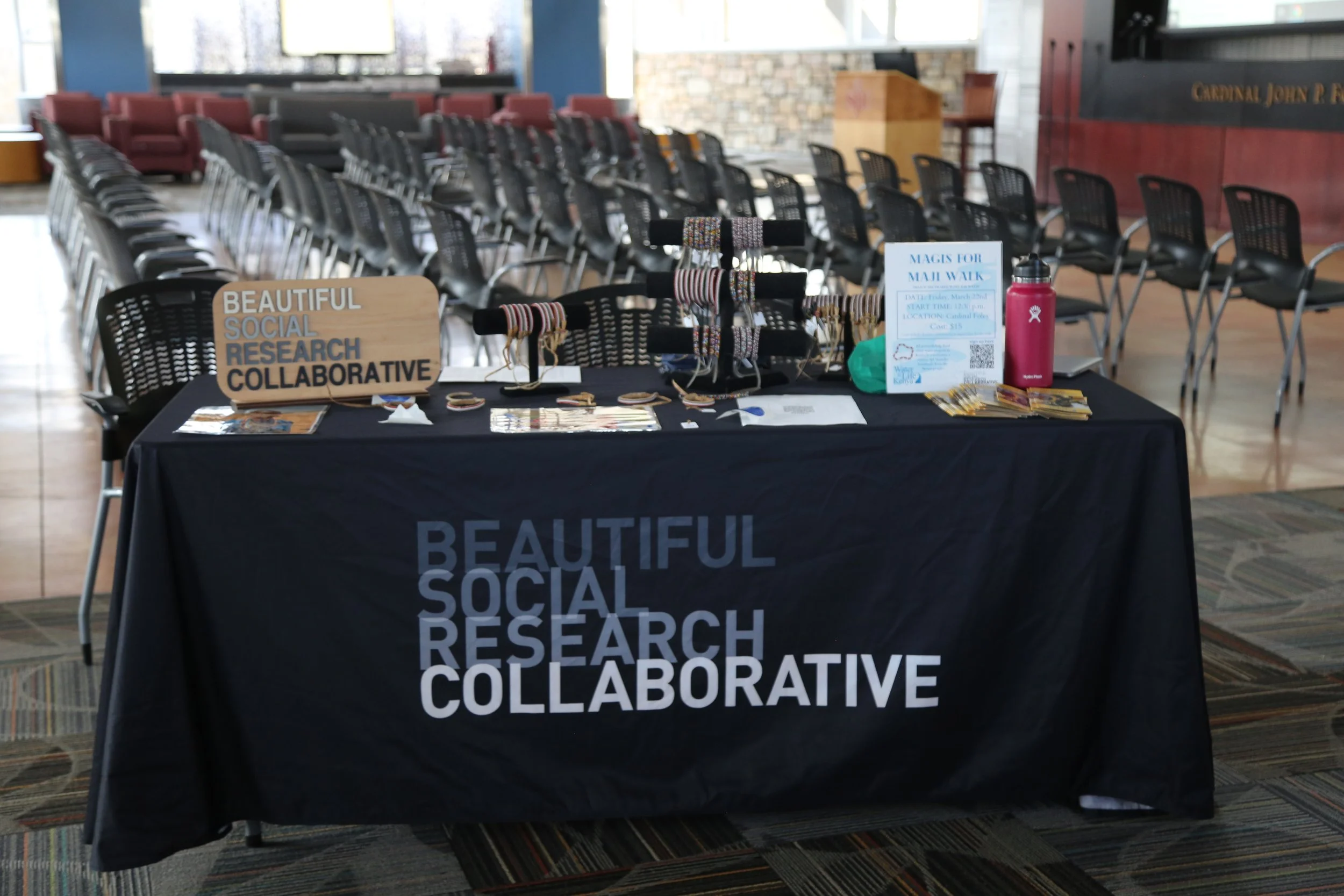 To complete these goals, we started talking about how we were going to promote the walk. We used flyers and other methods around campus to reach as many people as we could, some of them with info about the walk and some about the crisis itself. As it went along, we decided to reach out on social media, creating a Magis for Maji Instagram account and making similar posts. This was all to get info and awareness about our walk. To actually get people to sign up and pay for the walk was a different issue. Ultimately, we decided to use the bracelets we were already planning on selling to use as people’s tickets to come to the walk. As we sold bracelets, we got more people to sign up for the walk, making it easier to accomplish our goals.
